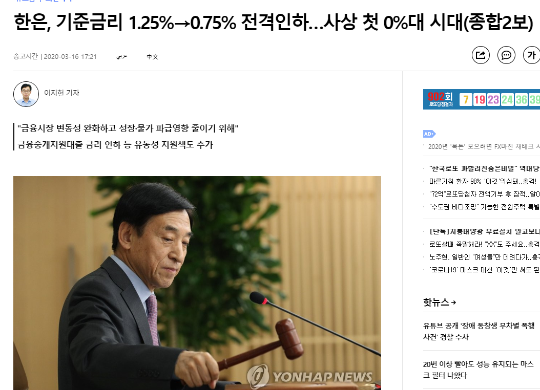지난주에 미국이 금리를 0%로 내렸는데요.