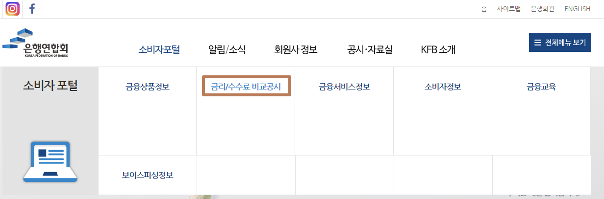 소비자포털>금리/수수료 비교 공시를 클릭해주세요!