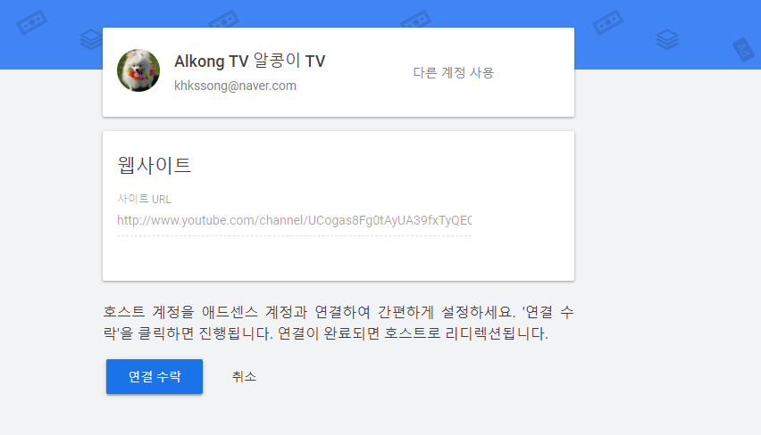 연결하기 위한 구글애드센스 계정에 로그인을 하면,