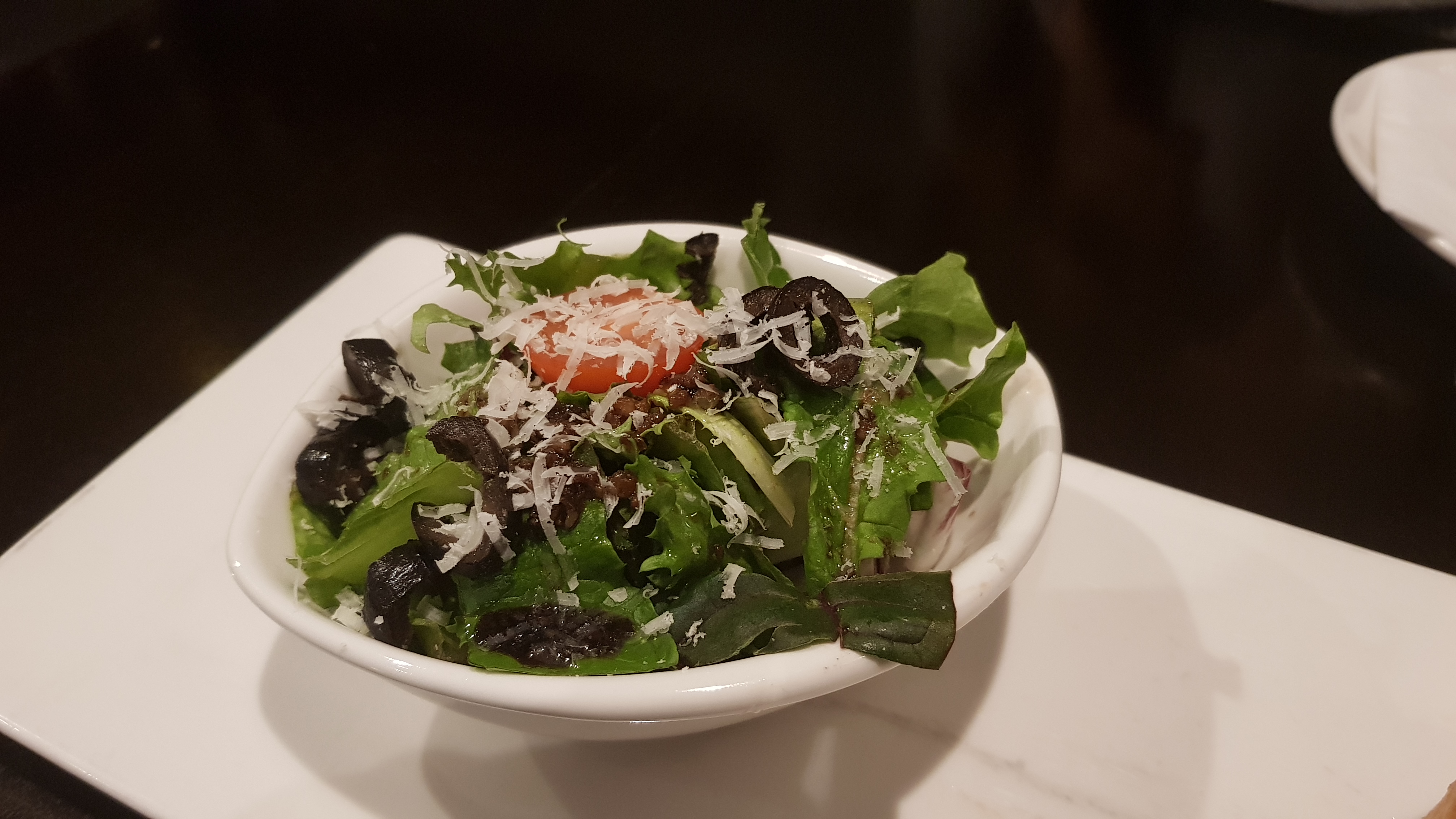 메인 음식이 나오기 전에 나오는 샐러드와 마늘빵입니다.