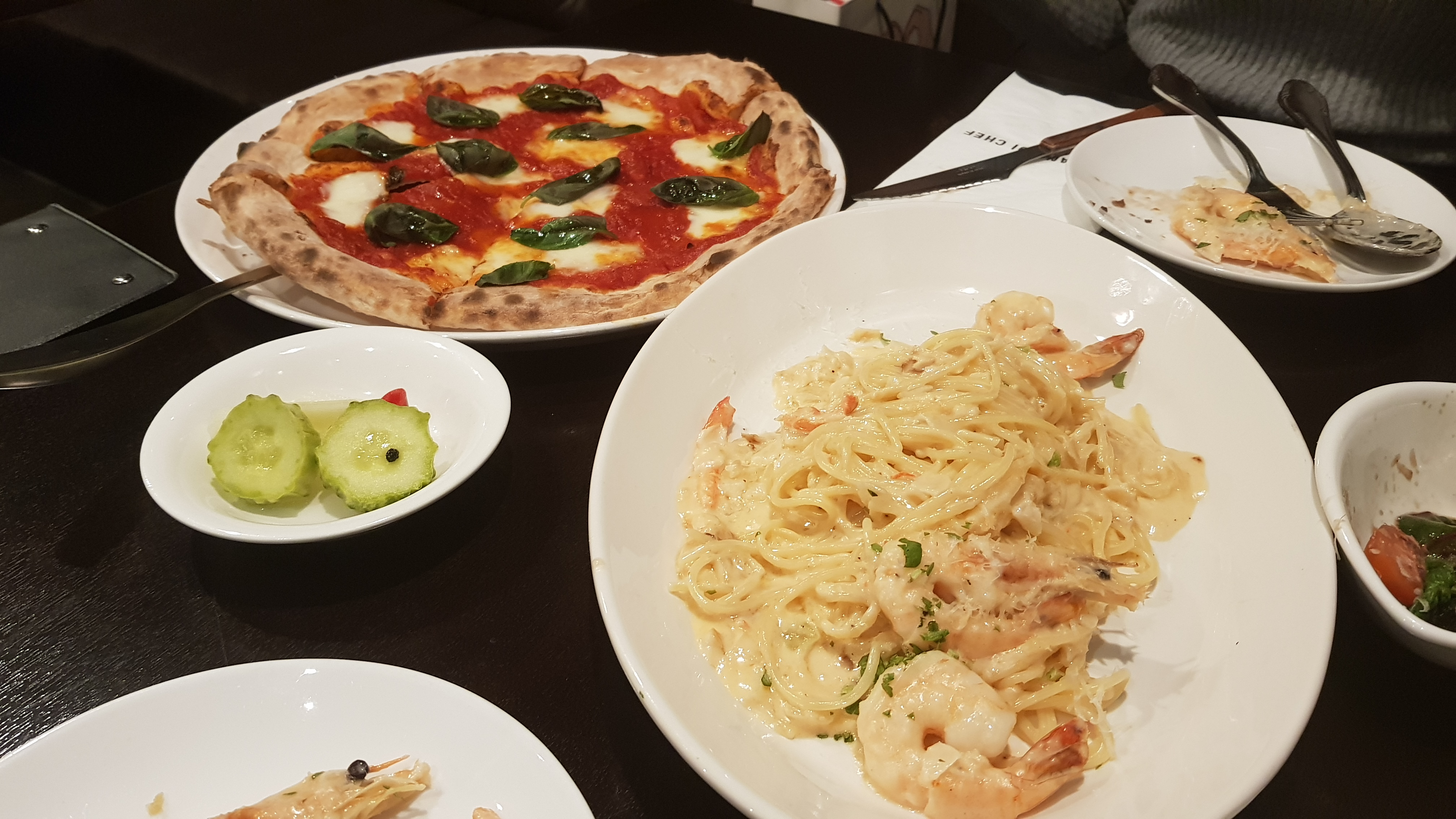 저희는 크랩쉬림프파스타와 마게리따피자를 주문하였는데요.